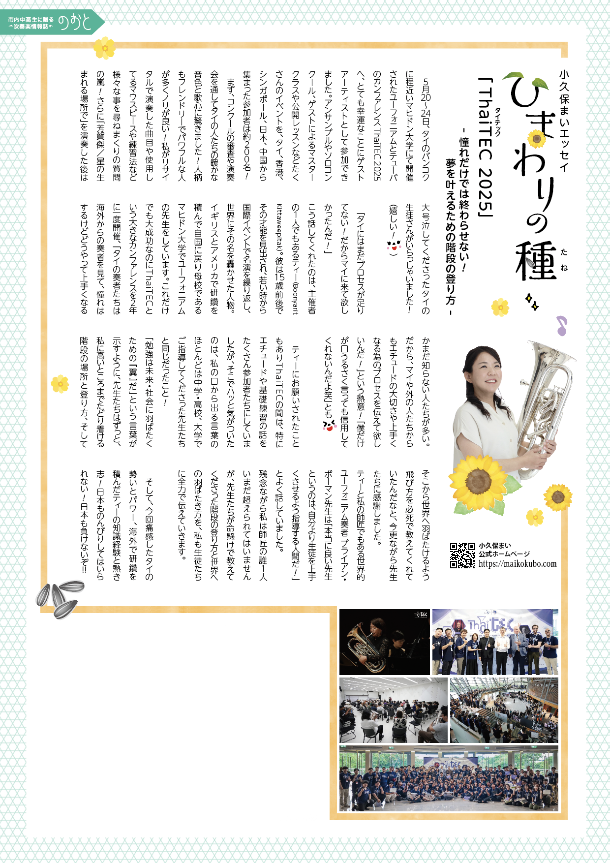 浜松市の吹奏楽情報誌フリーペーパー「のおと」連載エッセイ「ひまわりの種」「のおと」について